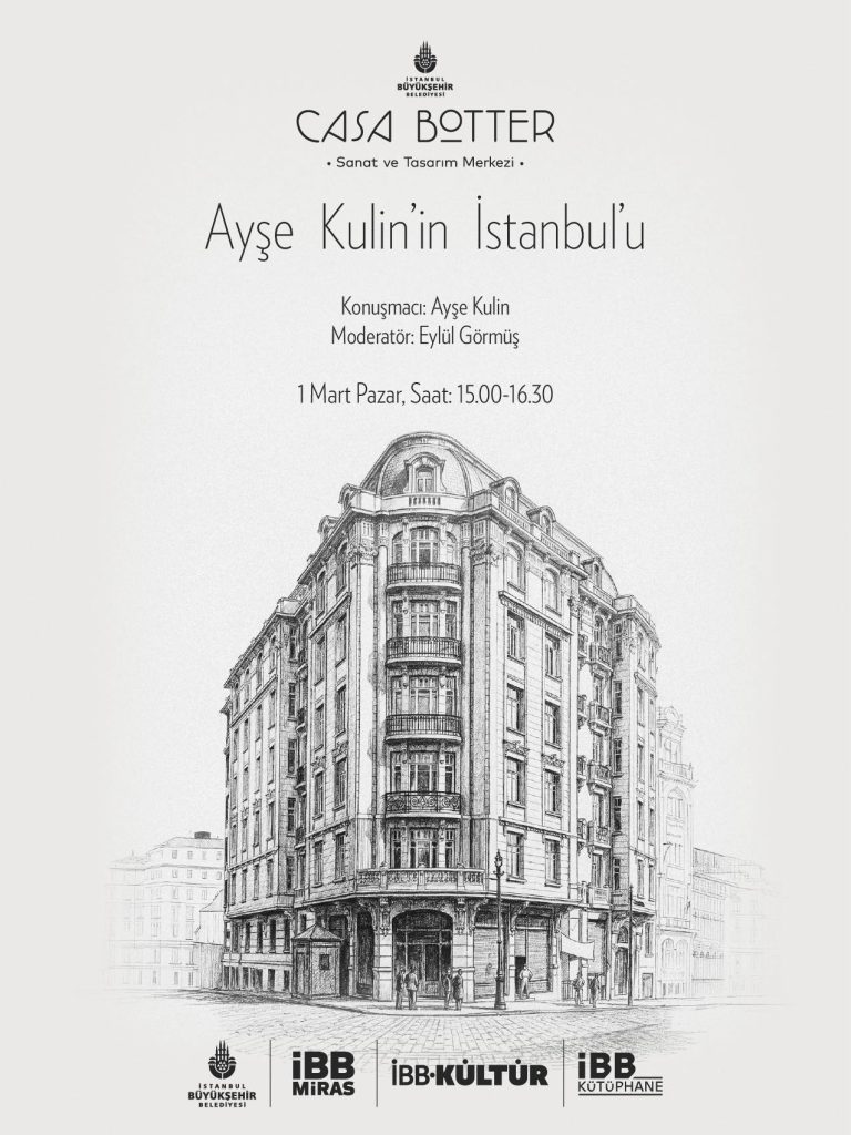 Ayşe Kulin’in İstanbul’u İBB Miras öncülüğünde Casa Botter Buluşmaları’nda masaya yatırılacak. Eylül Görmüş’ün moderatörlüğündeki etkinlik 1 Mart Pazar günü saat 15.00’te Casa Botter’de gerçekleşecek.